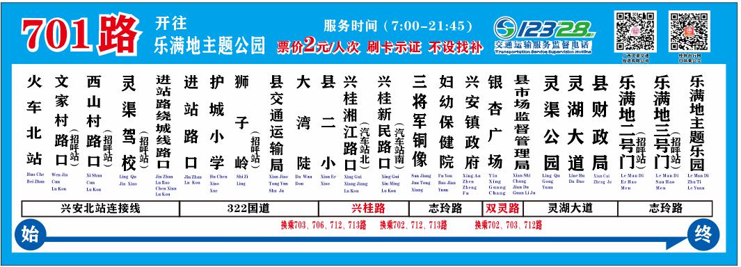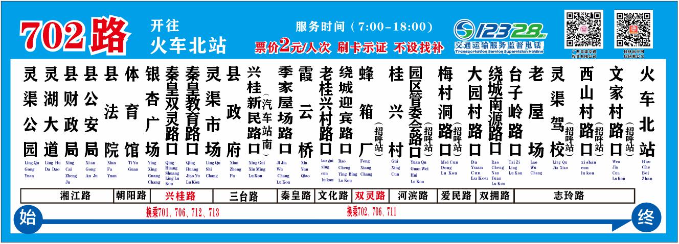 702路公交车:灵渠公园——兴安县人民政府——火车北站