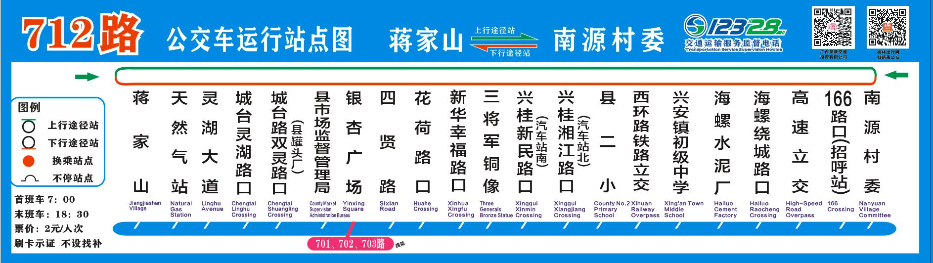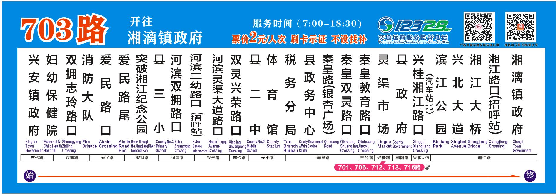 703路公交车:兴安镇人民政府——体育馆——湘漓镇人民政府