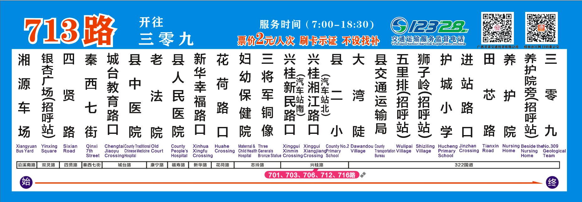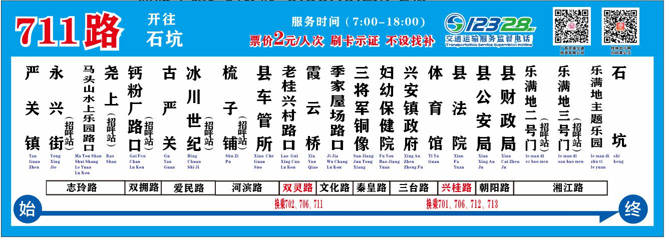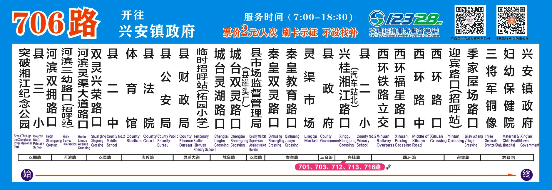 706路公交车:突破湘江纪念公园——兴安县人民政府——兴安镇人民政府