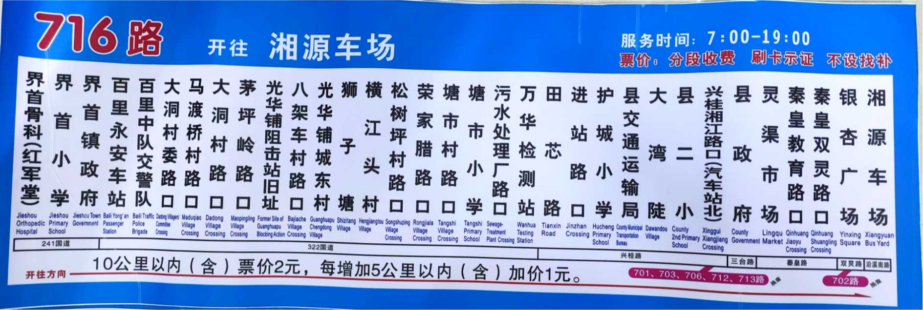 716路公交车:界首骨科医院(红军堂)——光华铺——湘源停车场