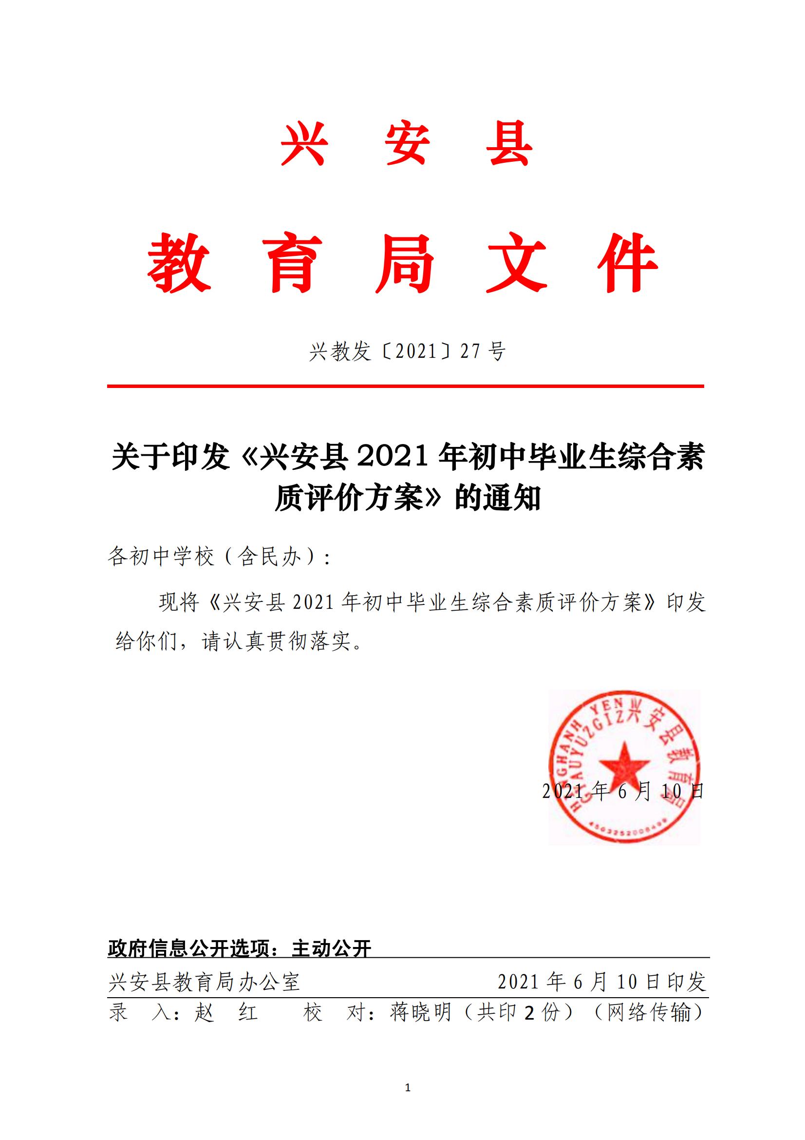 附件5:兴安县2021年初中毕业生综合素质评价汇总表.docx