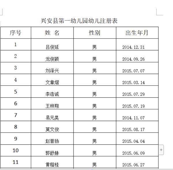 兴安县第一幼儿园2018年新生录取名单
