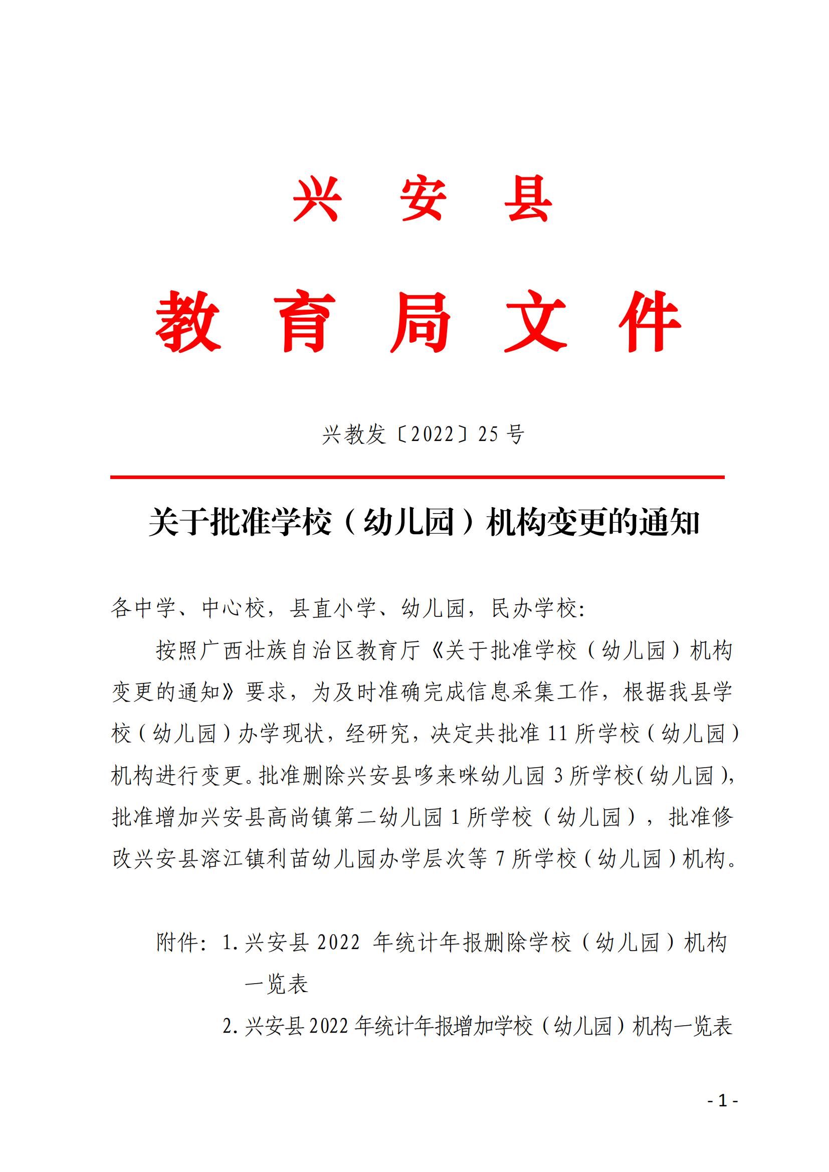 兴教发〔2022〕25号关于批准学校(幼儿园)机构变更的通知