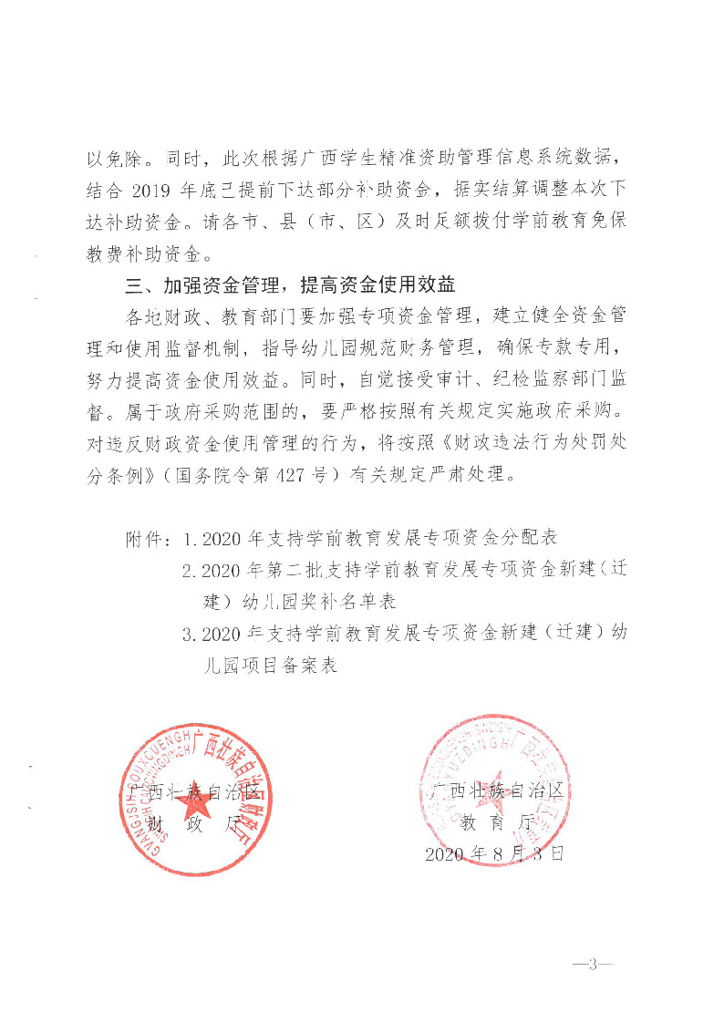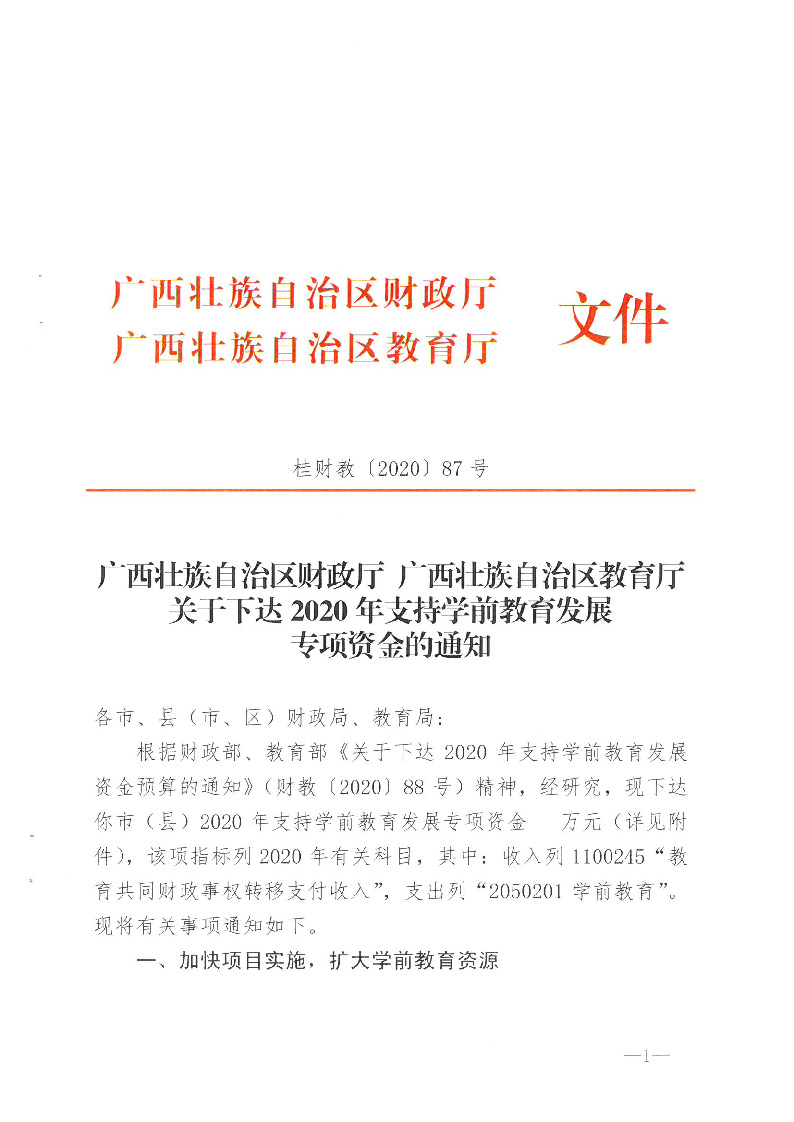 桂财教〔2020〕87号关于下达2020年支持学前教育发展专项资金的通知