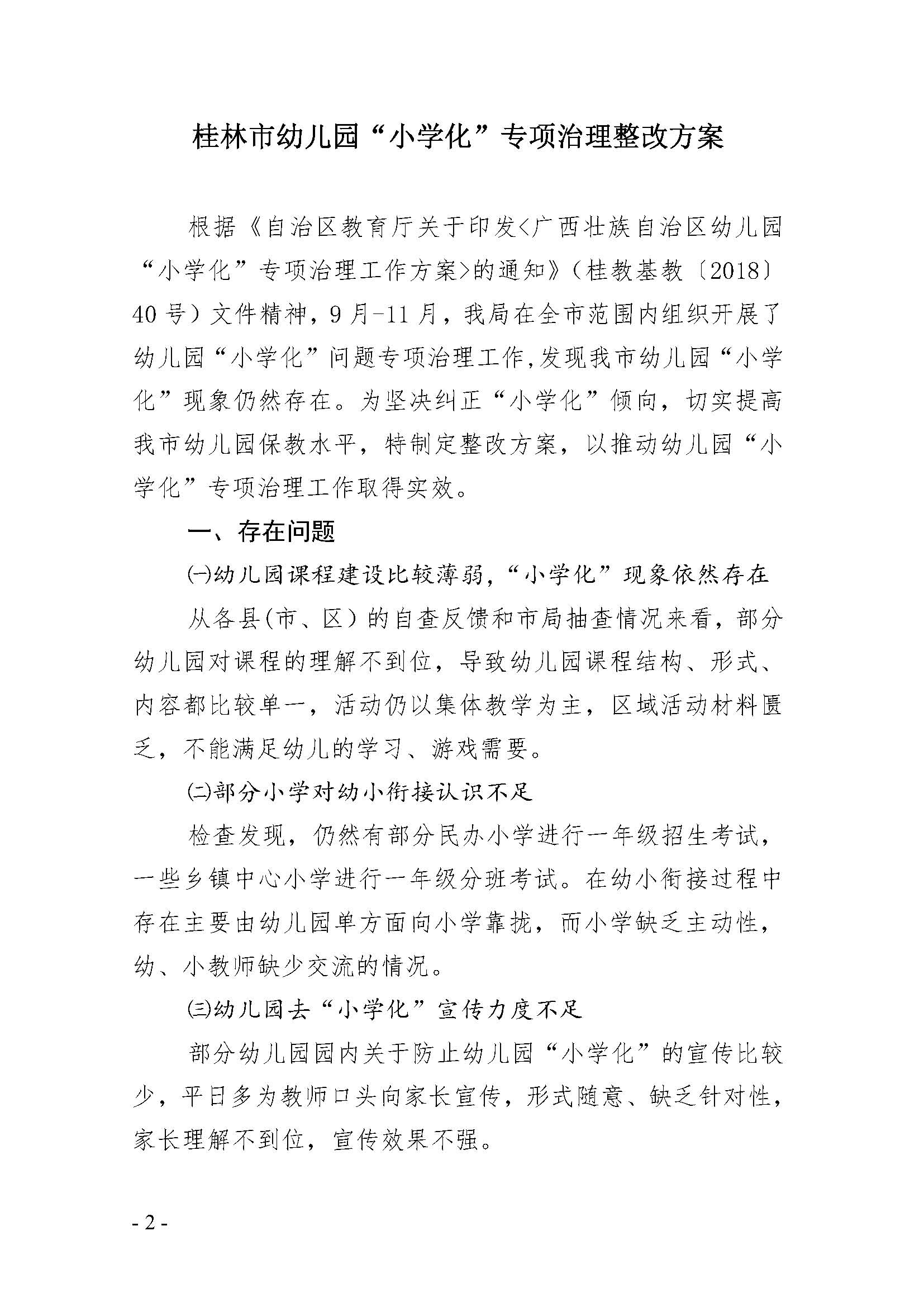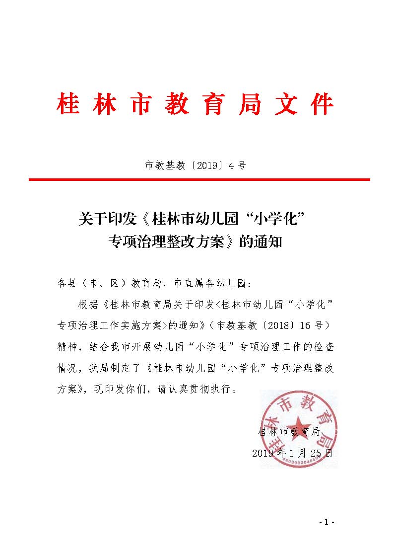 市教基教【2019】2号 桂林市教育局关于印发《桂林市幼儿园“小学化”专项治理整改方案》的通知