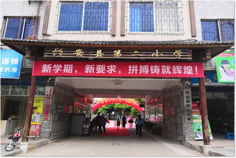 兴安县第二小学创建于1992年,是全日制公立学校,位于兴安县兴桂中路57号。学校占地面积14111平方米。现有31个教学班1629名学生,教职工87人。学校前临322国道,后依古灵渠,交通便利,环境宜人。教学设施不断完善,每班都配有多媒体教学平台;仪器室、图书室、阅览室、音乐室、美术室等功能室各具特色,尽显其用。教学区、运动区和生活区规划合理。校园常年鲜花盛开,绿树成荫,文化长廊,名言警句相得益彰,浓厚的灵渠文化滋润着莘莘学子,激励着二小师生不断前行。