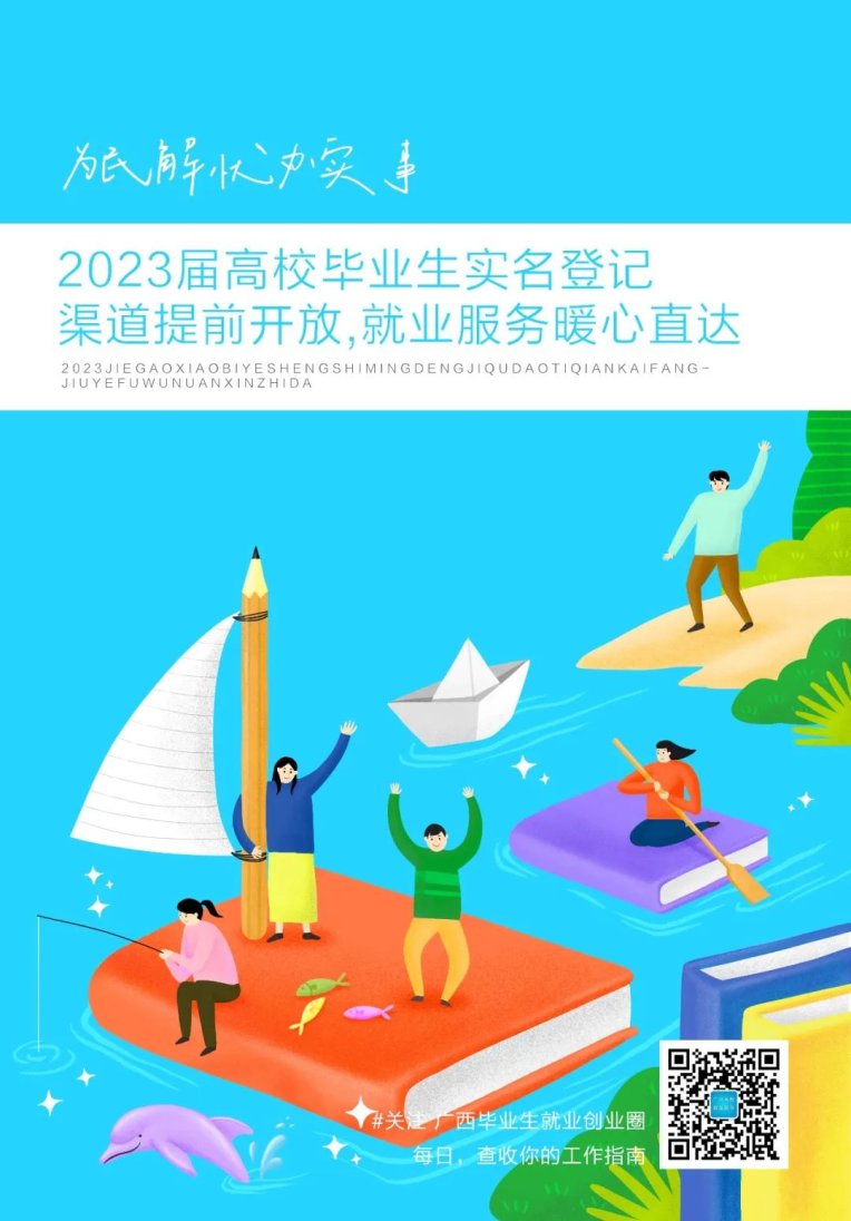 2023年6月起,广西各级公共就业人才服务机构提前开放2023届离校未就业高校毕业生实名登记服务渠道,提前掌握未就业高校毕业生就业状况和就业服务需求,不断线提供就业帮扶服务,帮助高校毕业生尽早实现就业。