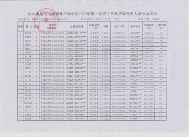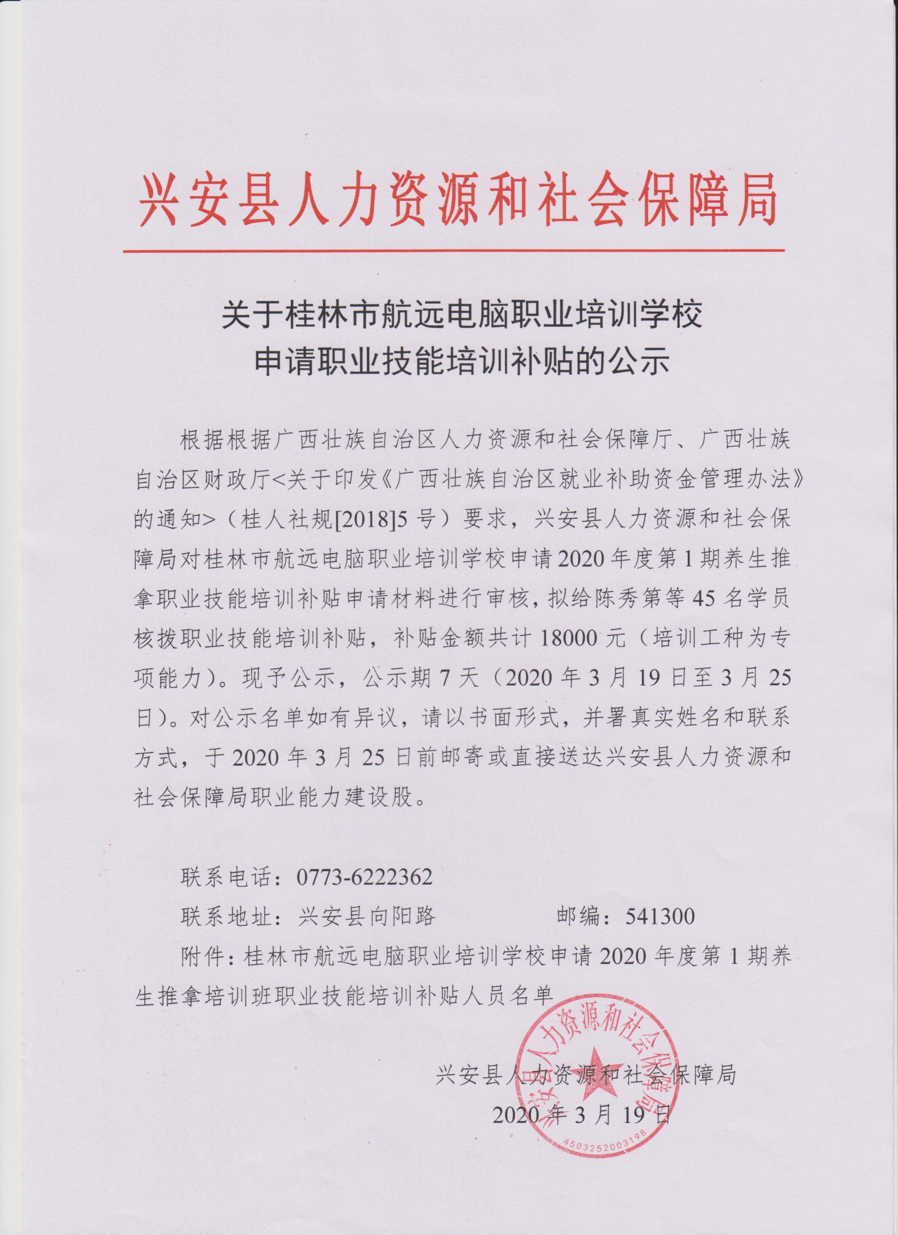 关于桂林市航远电脑职业培训学校申请职业技能培训补贴的公示
