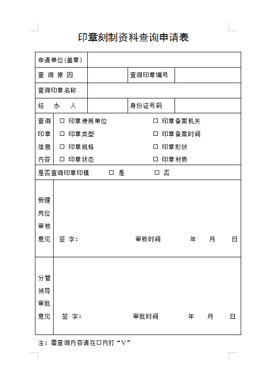印章刻制资料查询申请表