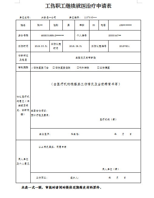 旧伤复发申请确认(工伤职工继续就医治疗)(样表)