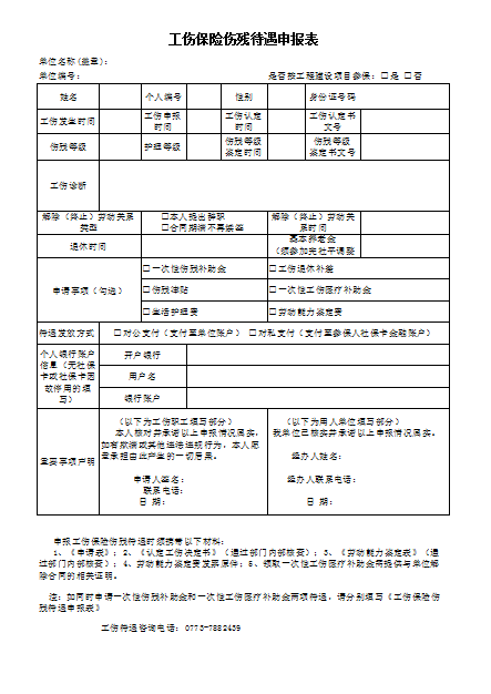 工伤保险伤残待遇申报表.xls
