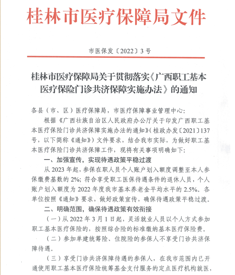 转发《桂林市医疗保障局关于贯彻落实<广西职工基本医疗保险门诊共济保障实施办法>的通知》