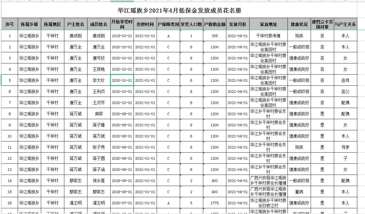 华江瑶族乡2021年4月低保金发放成员花名册.xlsx