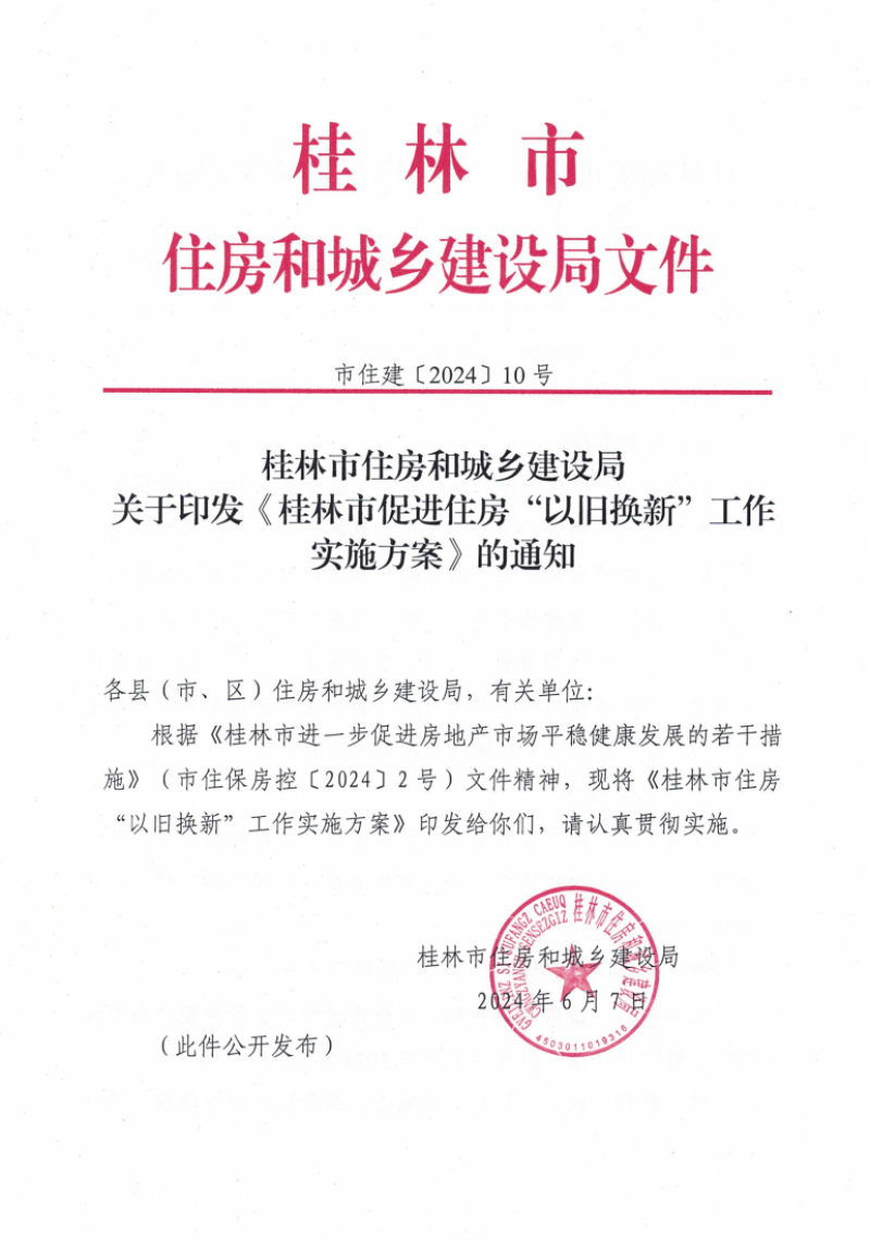 关于印发《桂林市促进房产市场“以旧换新”工作实施方案》的通知