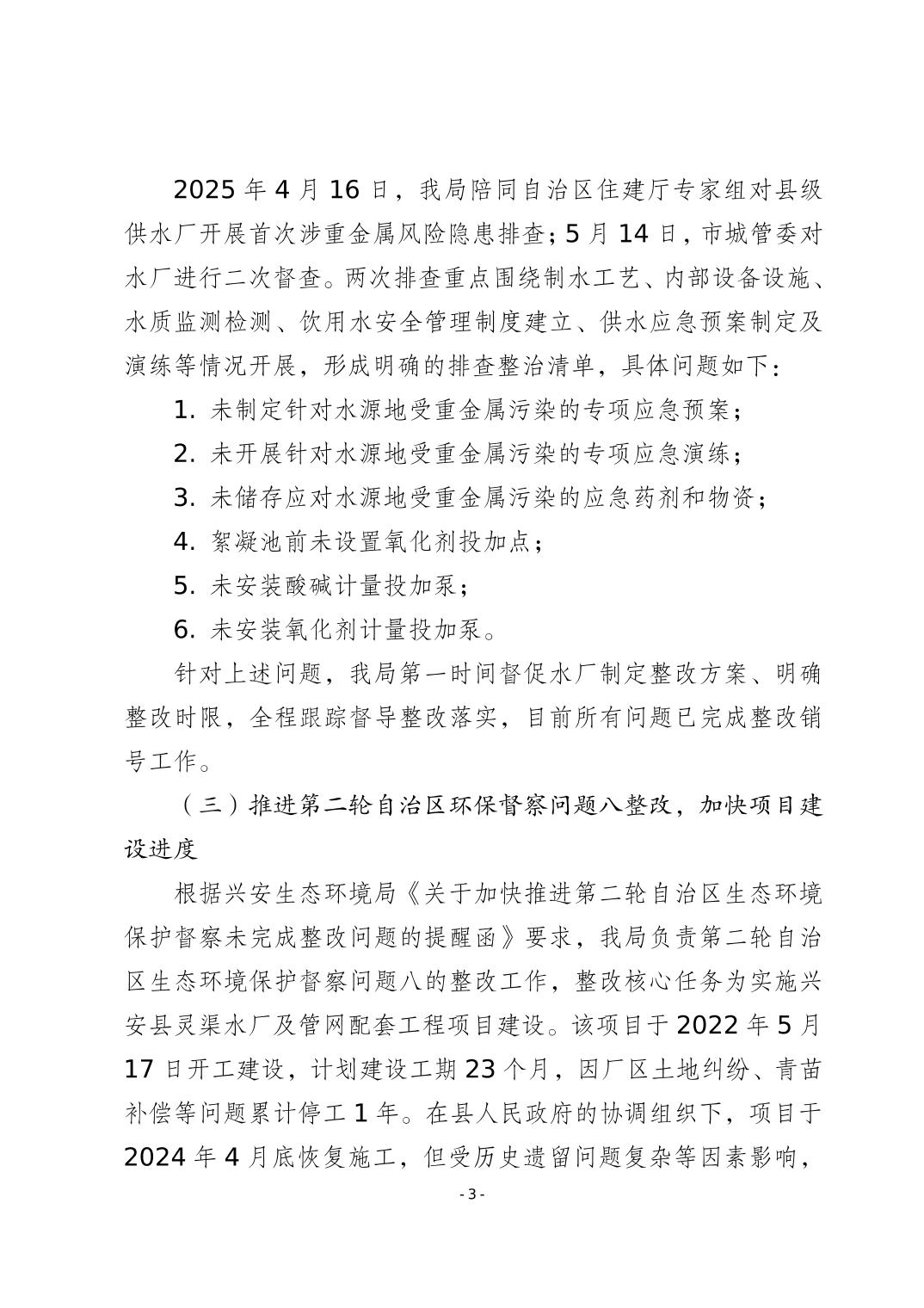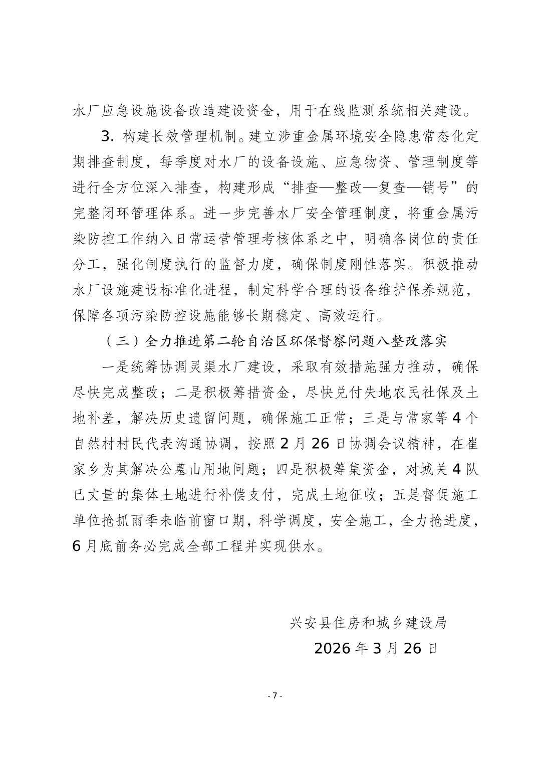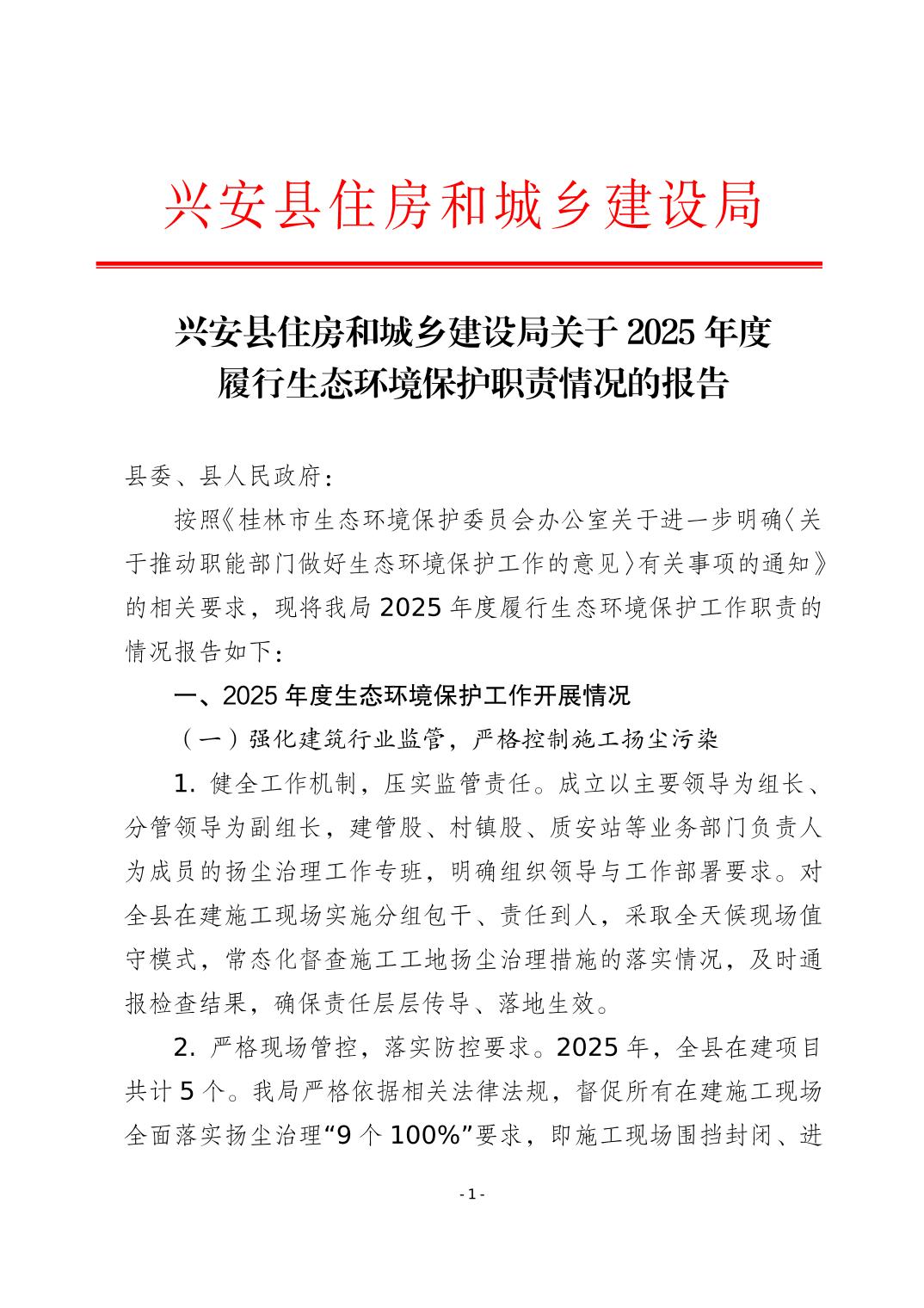 兴安县住房和城乡建设局关于2025年度 履行生态环境保护职责情况的报告
