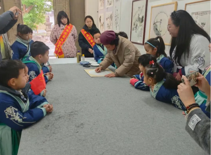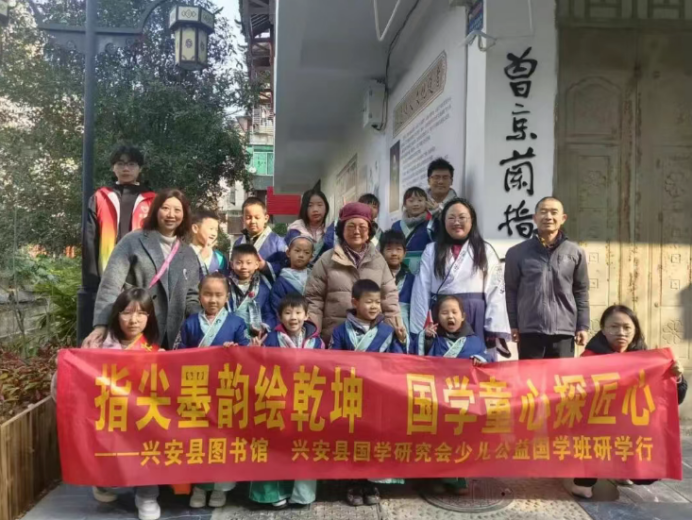 为厚植少儿国学素养,传承中华传统指画技艺,近日,兴安县图书馆与兴安县国学研究会组织少儿公益国学班全体学员开展参观指画大师曾京兰工作室研学活动。本次活动以灵渠文脉为纽带,将国学启蒙与非遗技艺实践相结合,让孩子们近距离感受传统艺术魅力,活动取得了良好的效果。
