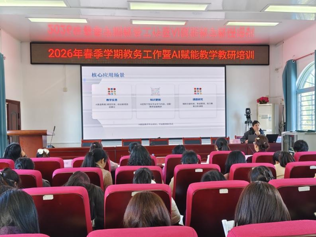 为深化教育数字化转型,推动人工智能与教学教研深度融合,3月12日,县教育局组织开展了2026年春季学期教务工作暨AI赋能教学教研培训活动。各高中分管教学副校长、中小学教务主任、乡镇中心校分管教学领导及各学科兼职教研员参会。活动分AI赋能培训与教务工作部署两个阶段有序开展。