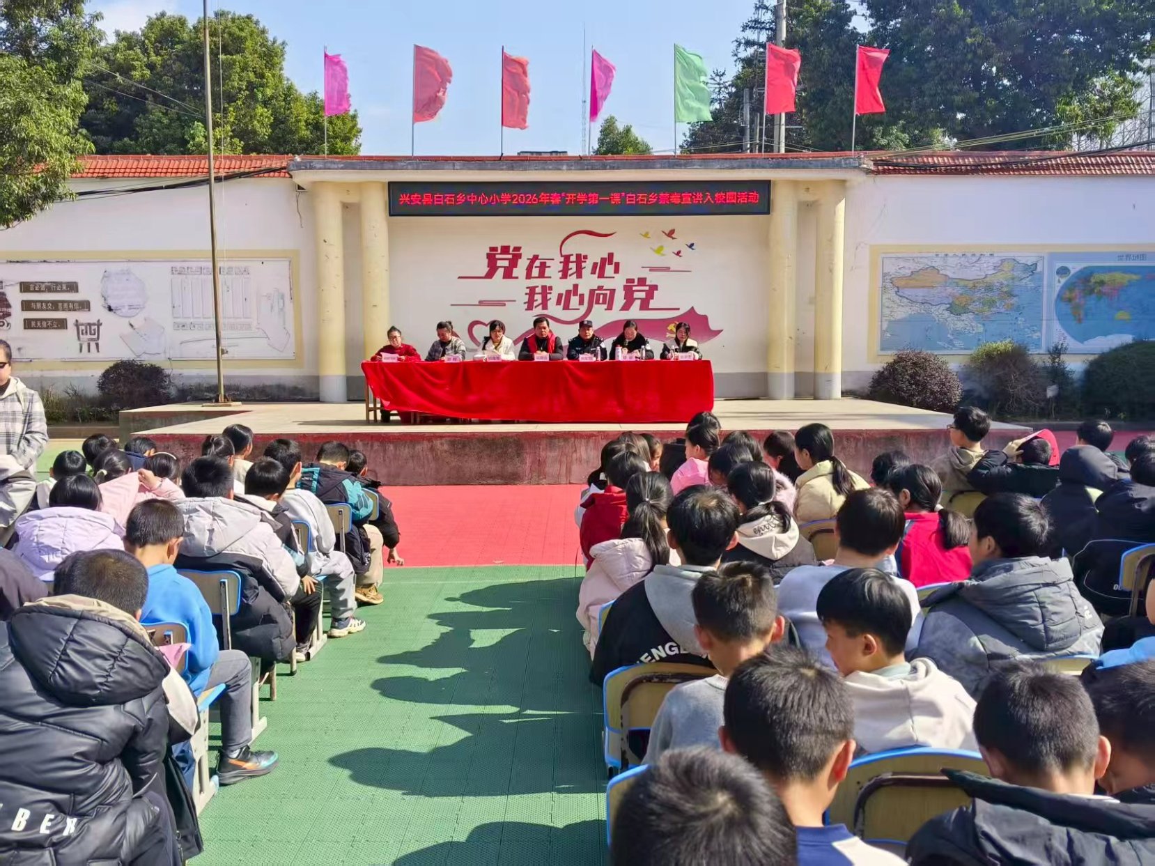 近日,白石乡联合该乡派出所、禁毒办等部门,以“开学第一课”为契机,到辖区各中小学开展反电诈、防校园欺凌、禁毒、反邪教、国防教育等系列主题宣讲活动,为校园安全保驾护航。
