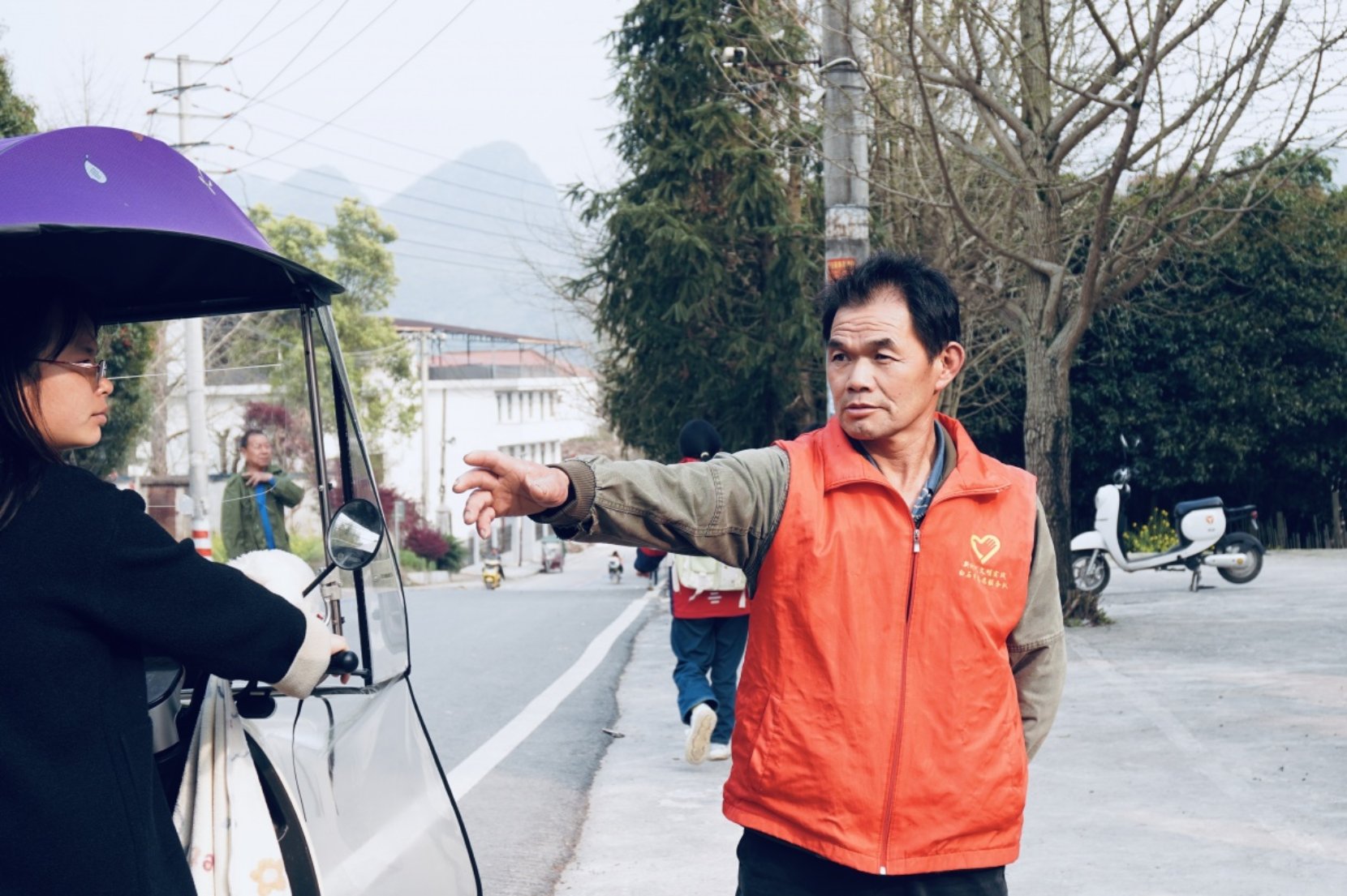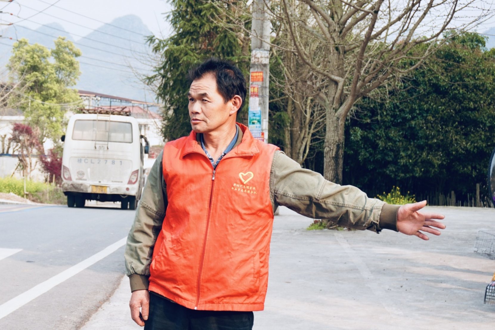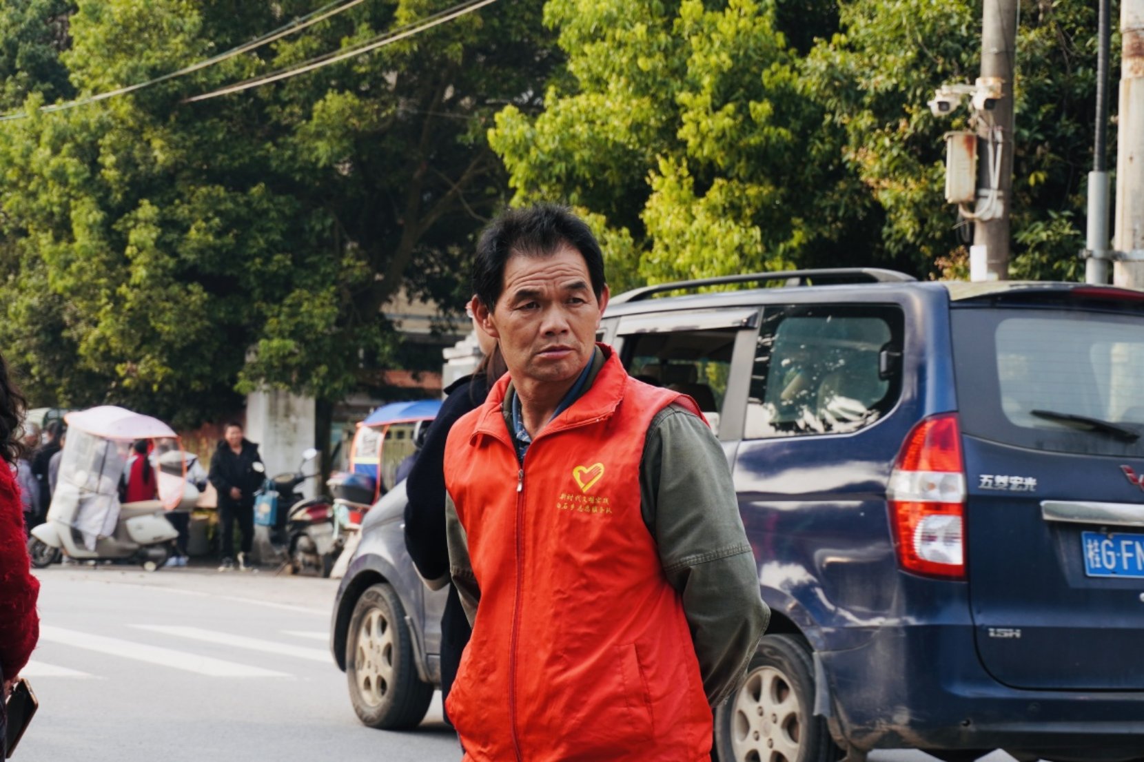 乡亲们记得,在五年前,乡街水泥路还不宽敞,两旁夹杂着泥巴田,摊贩们沿路设点,每逢圩日或雨天,常出现车辆陷泥、行人湿裤、交通拥堵的乱象。就在那个圩日,有人看到秦子林跟在交警志愿者身后,焦急地比划着双手 —— 志愿者读懂了,他想加入疏导队伍。从那以后,乡街的拐角口、车流密集处,便多了一道穿红马甲的沉默身影,成为守护乡圩的 “固定风景”。