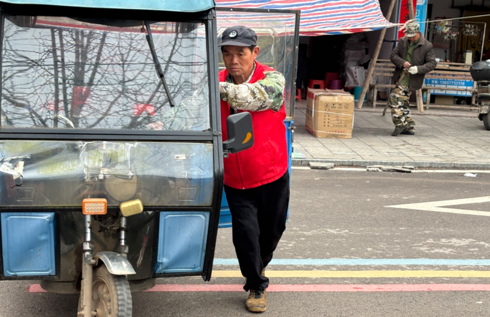 多年来,他摸索出一套独属于自己的无声 “指挥语”:右臂伸直左右挥动,指引车辆有序通行;发现摊贩占道,便笑着挥手示意商户往里退让;看到摩托车、电瓶车乱停乱放,就默默上前,一辆辆推至指定区域。“刚开始大家还不习惯,觉得他多管闲事,甚至有点烦他。” 在乡街摆摊多年的欧阳大婶感慨道,“可你看现在,车子开到街上都会主动慢下来,盯着哑叔的手势行事。他这手一挥,比啥喇叭都管用!” 如今,秦子林的无声手势,早已成为乡圩街头人人遵从的秩序准则。