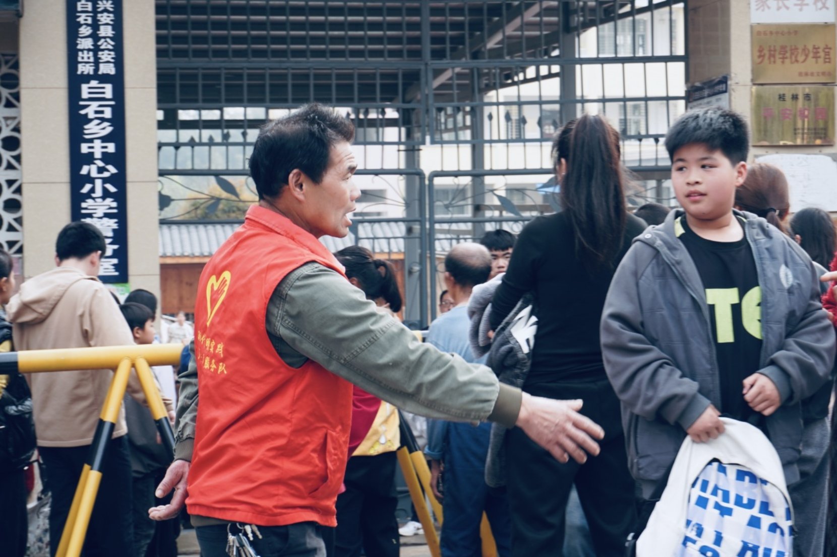 “赶闹子咯!”在桂林市兴安县白石乡,三天一圩的集市是刻在乡亲们骨子里的民俗。天刚蒙蒙亮,乡街便被车鸣声、叫卖声、讨价还价声织成热闹的市井交响,而在这片喧腾里,总有一道身着红马甲的沉默身影 —— 他用手势沟通,用脚步丈量,在车流人海中守护着乡圩的秩序与平安,成为烟火图景里最温暖的底色。