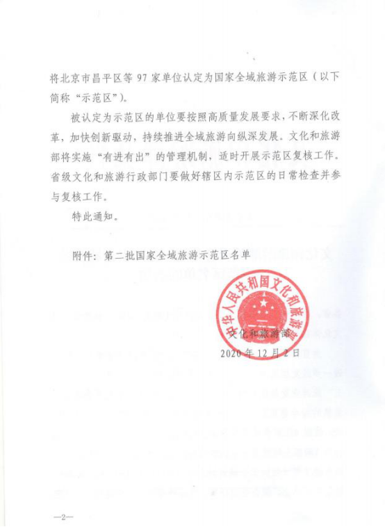 12月17日,文化和旅游部公布了第二批共97家国家全域旅游示范区名单。兴安县正式荣膺国家全域旅游示范区。成为桂林市唯一。