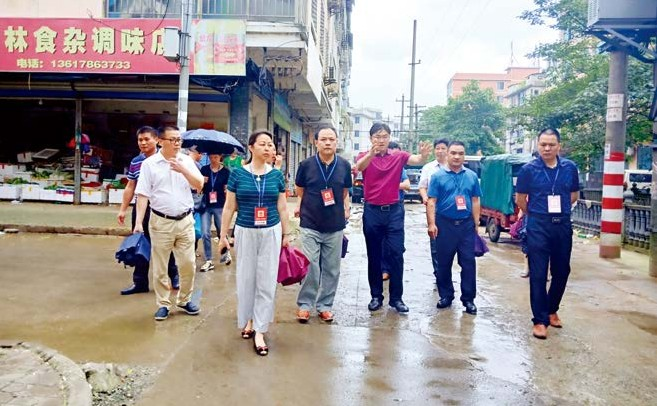 6月5日,兴安县人大常委会执法检查组到沿溪街查看马路市场情况