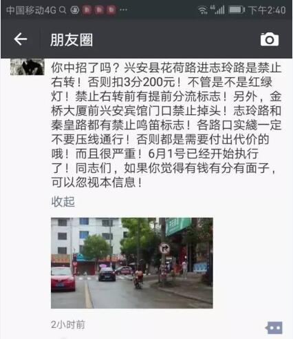 目前一条关于花荷路口禁止右转的信息在我县微信朋友圈中引起群众的广泛关注,群众对该路口为何要禁止右转感到疑惑,还有的讲在该路口右转车辆被处罚记分。交警部门对此立即进行了积极回应。