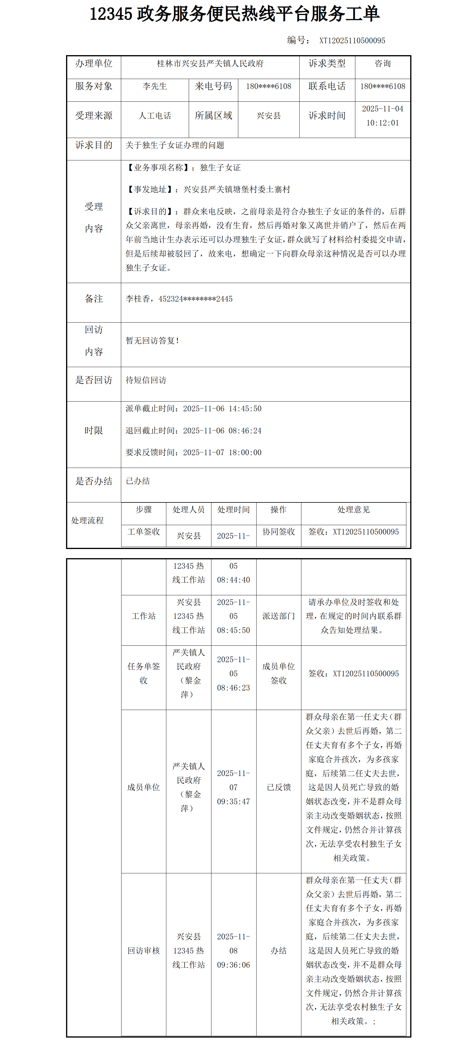 关于独生子女证办理的咨询