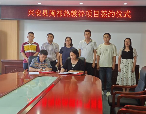 近日,兴安县闽祁热镀锌项目成功签约,该项目将对兴安县热镀锌产业进行改造升级,届时年可对热镀锌金属表面进行加工处理超4万吨,带动全县电力设备产业产值超3亿元,强力促进兴安电力设备产业集群集聚、提质增效发展。