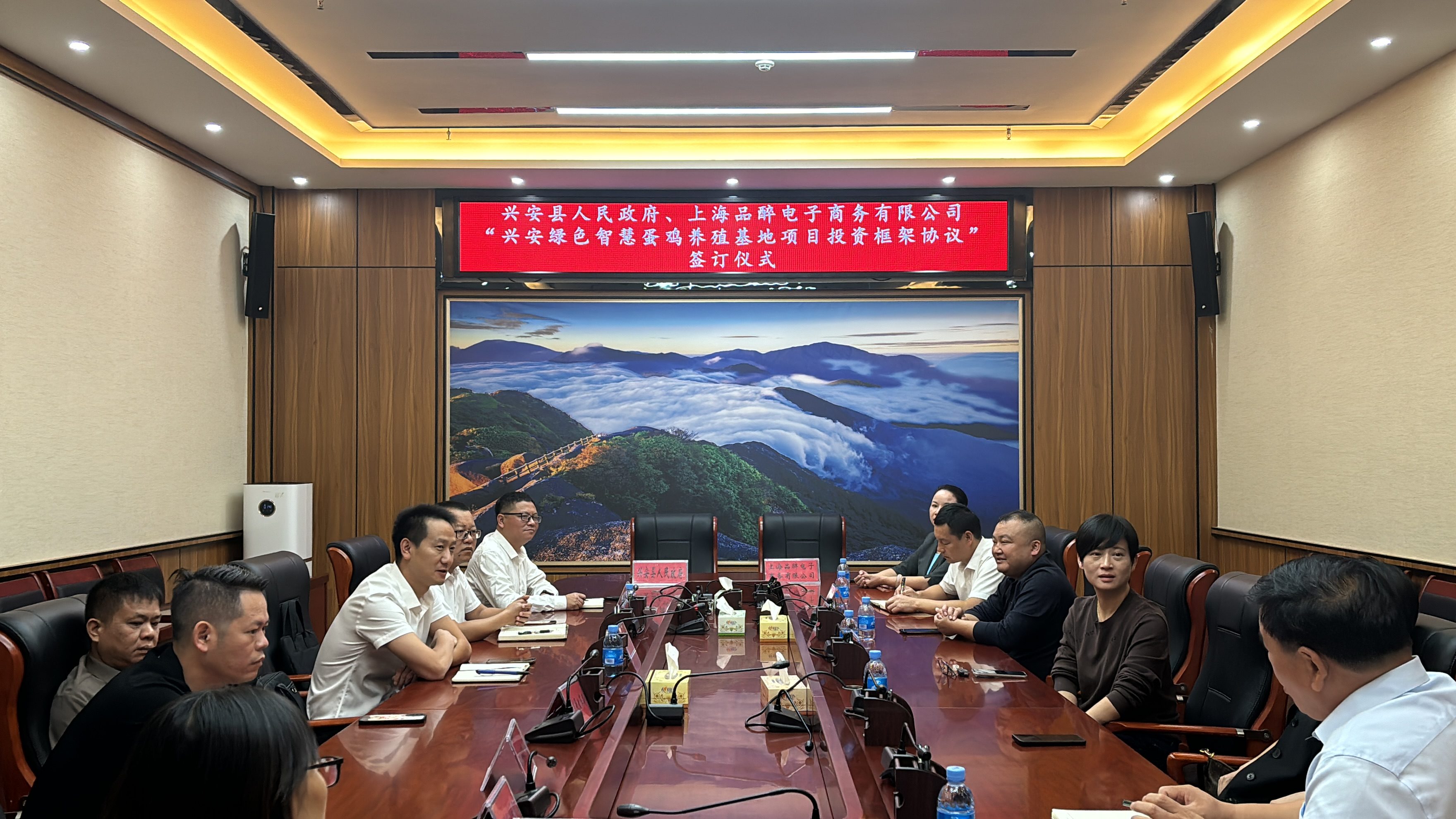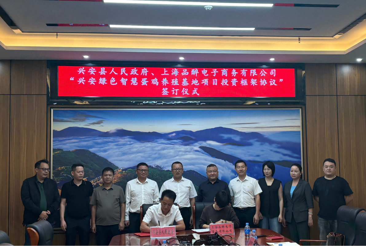 2025年10月15日上午,兴安县人民政府与上海品醉电子商务有限公司在兴安县隆重举行“兴安绿色智慧蛋鸡养殖基地项目”签约仪式,标志着这一重大农业产业化项目正式启动实施。