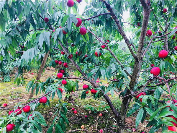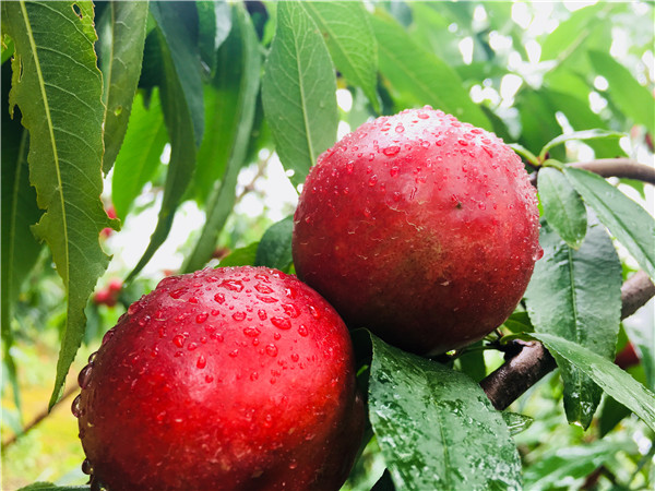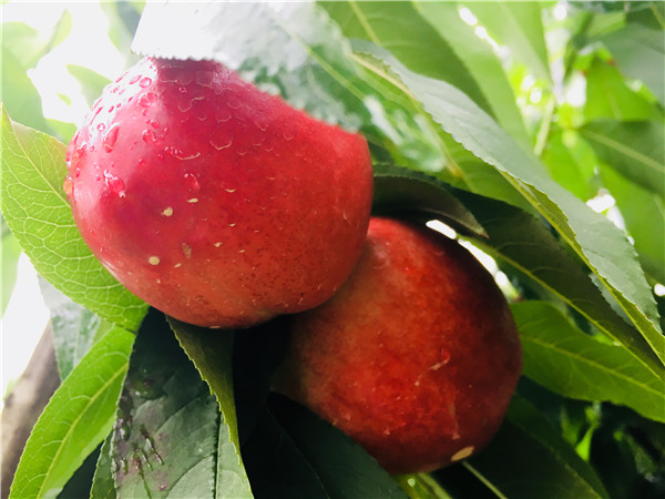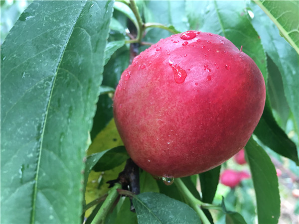 记者看到,在高塘村的油桃种植园里一株株枝叶茂盛的油桃树,争先恐后身姿百态笑迎雨水的恩泽,叶绿得发亮,果红得发紫,红绿相配为这个季节更添加了耀眼的色彩。由于油桃个大口感好,营养丰富,前来订购的人络绎不绝,收益十分可观。