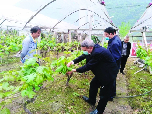 在开展理论培训后,专家来到了贫困户陈念明的葡萄园里,现场为大家讲解提高产量和质量的技术方法,并演示当前葡萄管护技术要领,解答农户在种植管理过程中遇到的疑难问题。