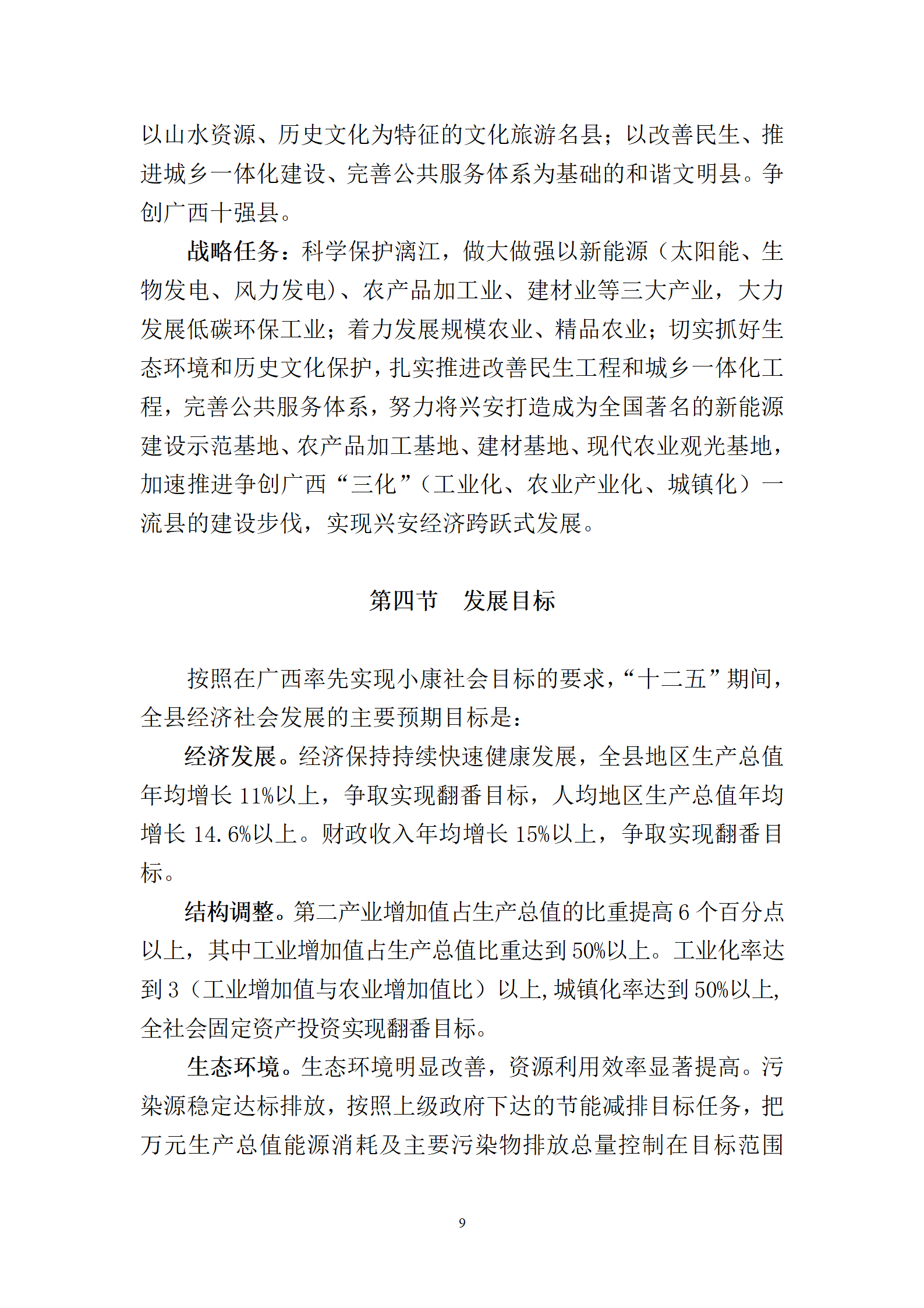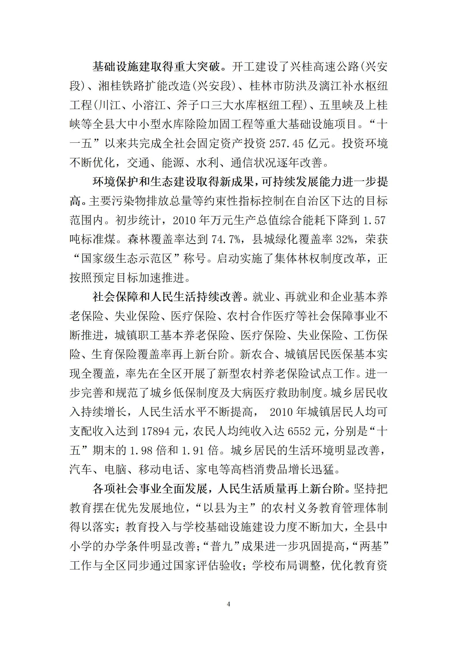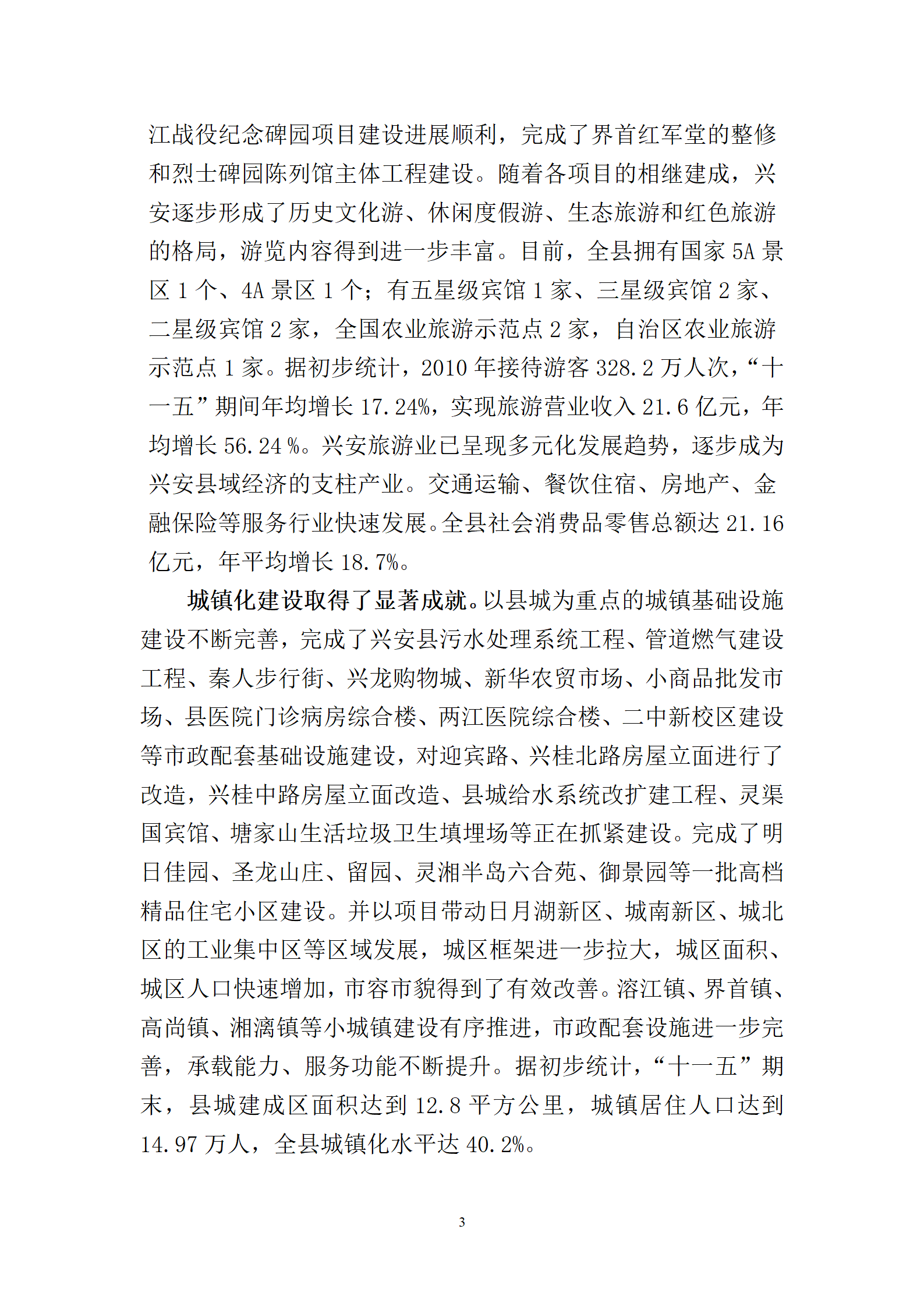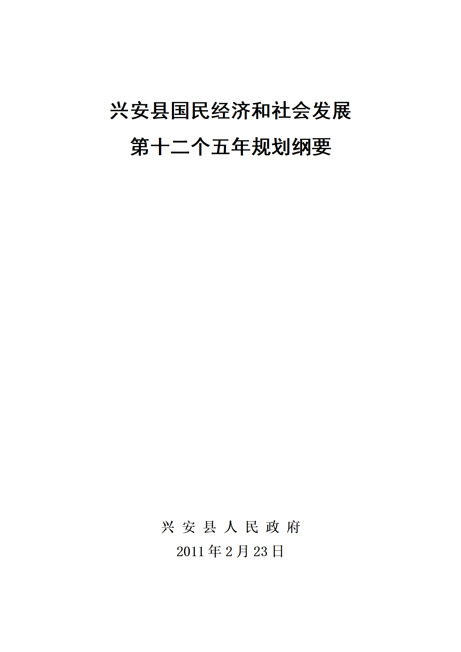 兴安县国民经济和社会发展第十二个五年规划纲要
