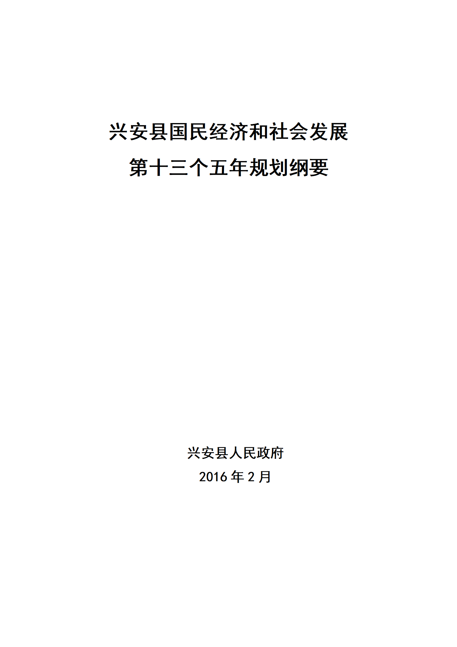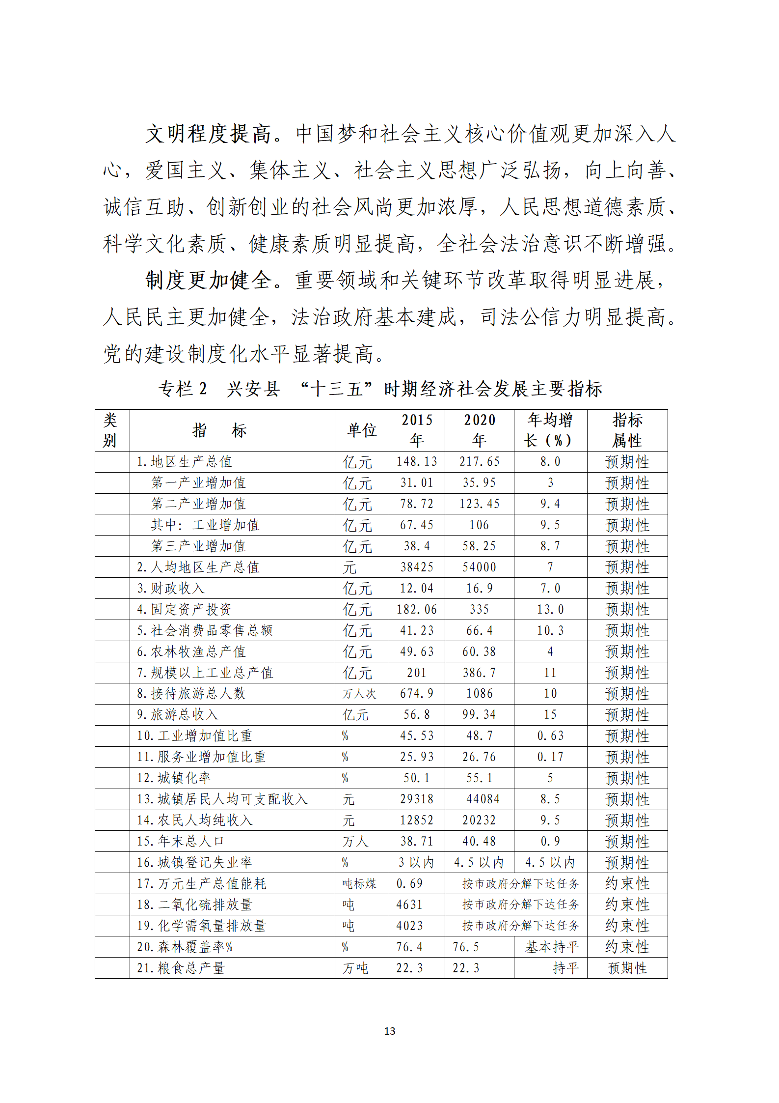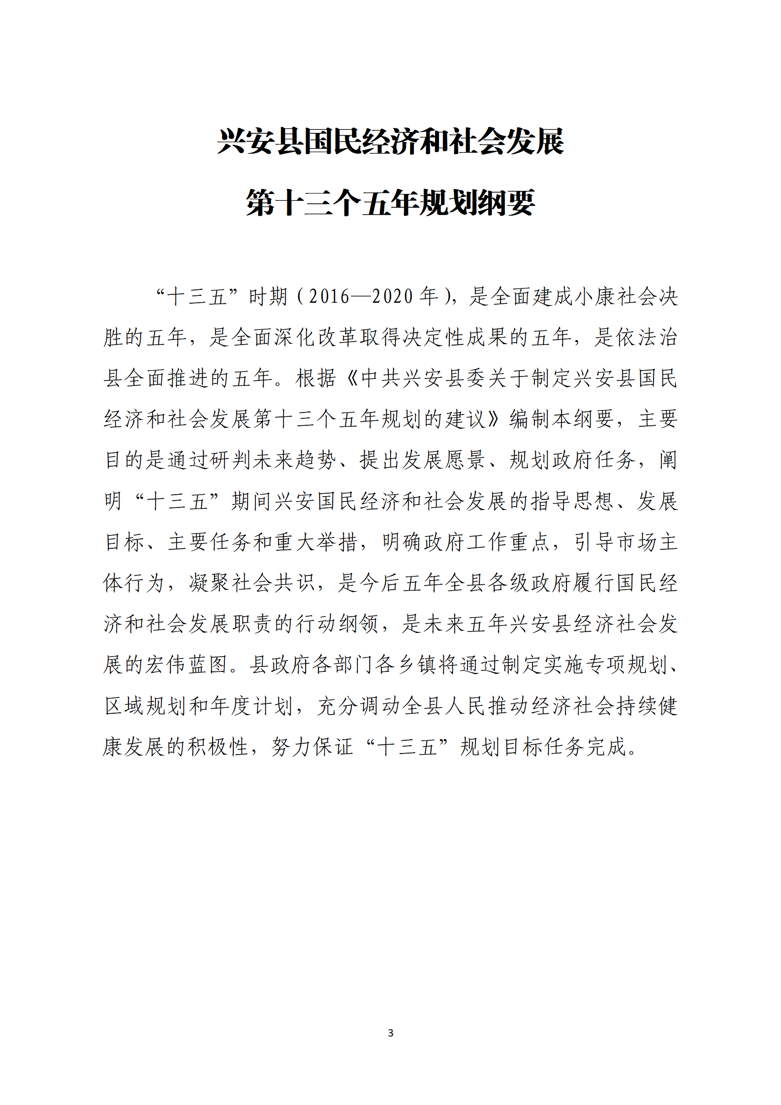 兴安县国民经济和社会发展第十三个五年规划纲要