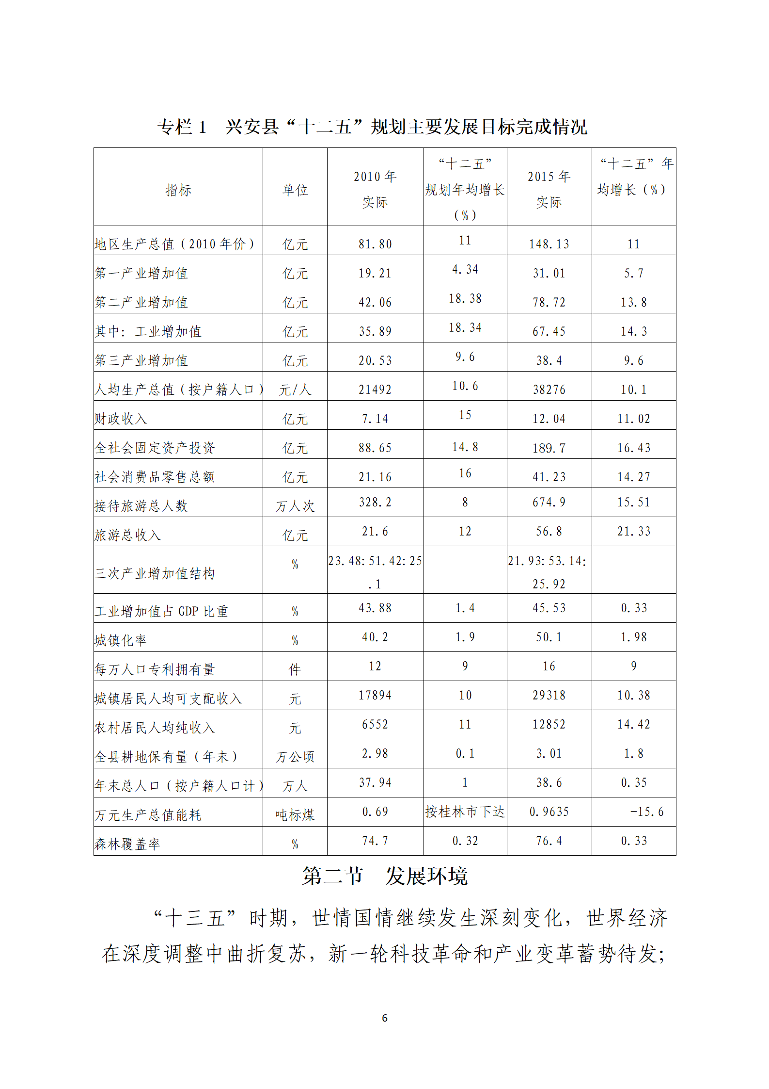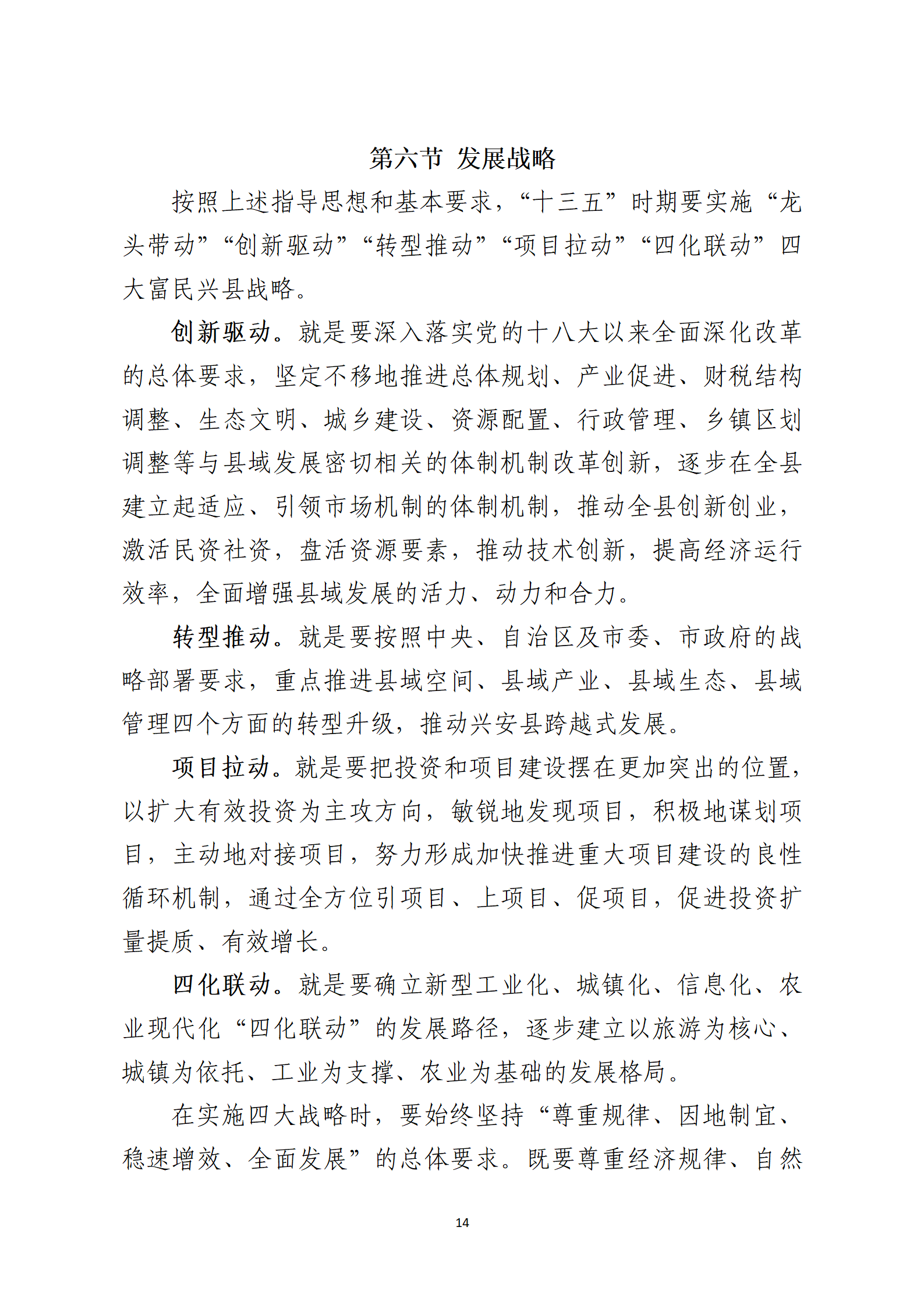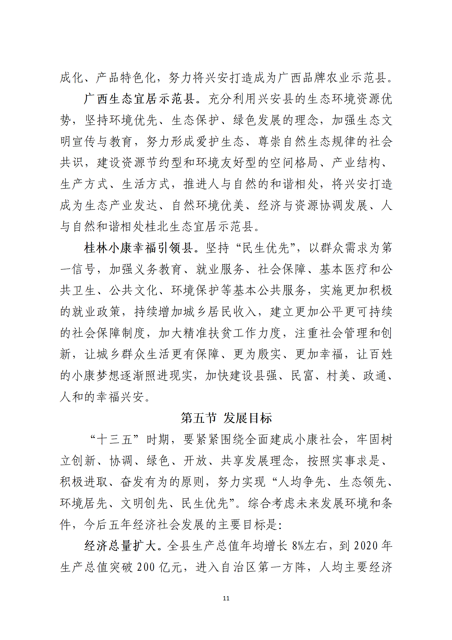 兴安县国民经济和社会发展第十三个五年规划纲要