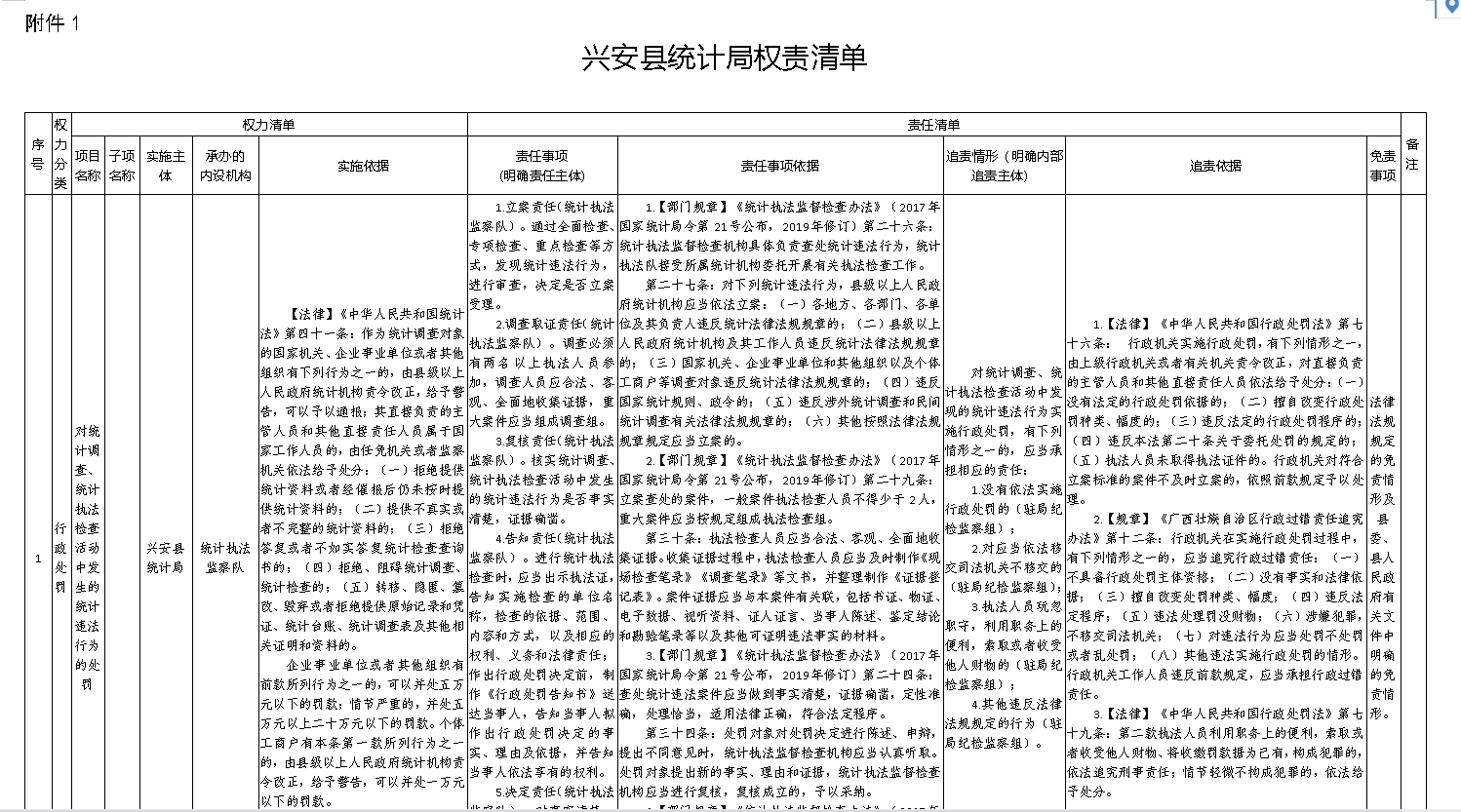 兴安县统计局权责清单