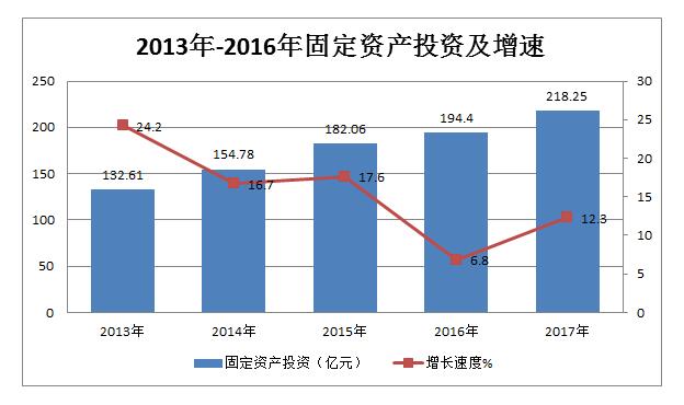 全年固定资产投资218.25亿元,比上年增长12.27%。其中,工业投资101.97亿元,下降4.7%;房地产开发投资2.16亿元,下降69.79%。