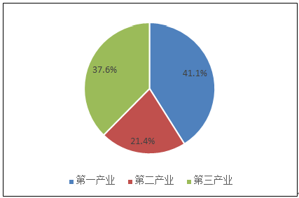 初步核算,全县地区生产总值按可比价格计算,同比增长3.5%。其中,第一产业增加值增长6.2%;第二产业增加值增长5.8%;第三产业增加值下降0.3%。三次产业增加值占地区生产总值的比重分别为41.0%、21.4%和37.6%,对经济增长的贡献率分别为64.1%、39.26%和-3.36%。