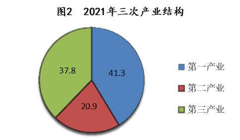 初步核算,全年全县生产总值(GDP)162.47亿元,按可比价计算,比上年增长9.3%。分产业看,第一产业增加值67.05亿元,增长10.3%;第二产业增加值33.95亿元,增长8.7%;第三产业增加值61.47亿元,同比增长8.4%。三次产业增加值占地区生产总值的比重分别为41.3%、20.9%和37.8%,对经济增长的贡献率分别为46.2%、19.8%和34.0%。