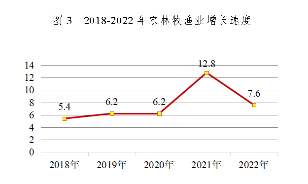 2022年,全县农林牧渔业总产值107.75亿元,同比增长7.6%。其中,农业产值83亿元,同比增长9.3%;林业产值3.14亿元,同比增长0.1%;畜牧业产值17.70亿元,同比增长0.9%;渔业产值1.45亿元,同比增长2.9%;农林牧渔业及辅助性活动产值2.46亿元,同比增长4.1%。