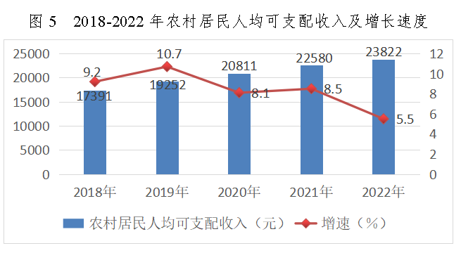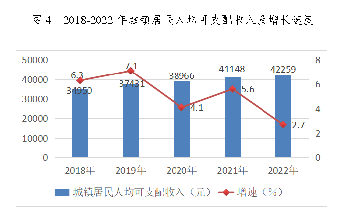 2022年,全县居民人均可支配收入30904元,同比增长4.0 %,按常住地分,城镇居民人均可支配收入42259元,同比增长2.7%;农村居民人均可支配收入23822元,同比增长5.5%,农村居民人均可支配收入增速快于城镇居民人均可支配收入增速2.8个百分点。城乡居民收入倍差1.77,比上年缩小0.05。