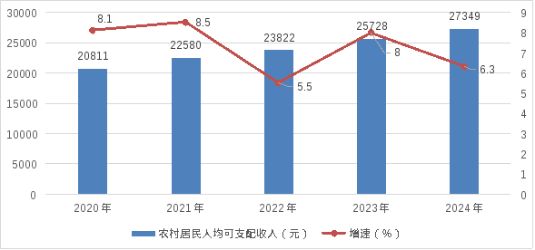 图3 2020-2024年农村居民人均可支配收入及增长速