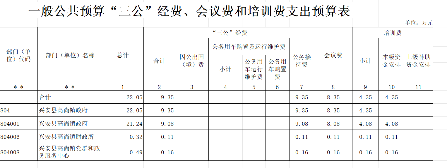 高尚镇2023年一般公共预算“三公经费”支出预算表