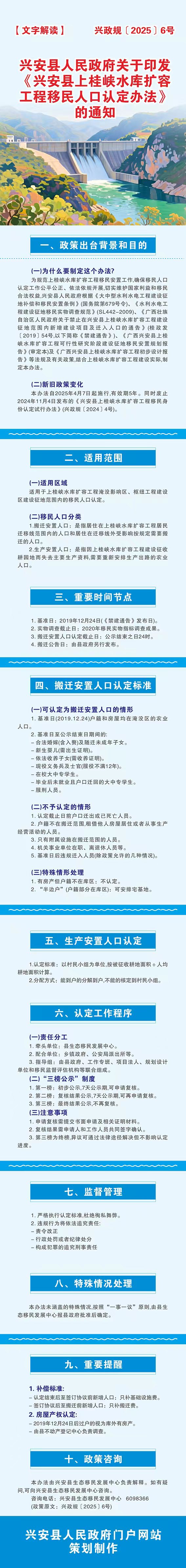 【图文解读】兴政规〔2025〕6号 兴安县人民政府关于印发《兴安县上桂峡水库扩容工程移民人口认定办法》的通知