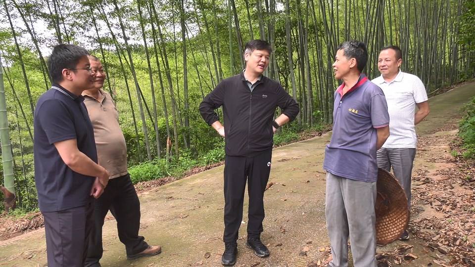 在严关镇清水村委小河村、黄塔岭村等地,贲黄文详细了解相关地质灾害隐患点的现状,认真察看山体的稳定性、土壤松动情况以及可能存在的潜在风险,与相关人员共同探讨了地质灾害的成因和防治措施。