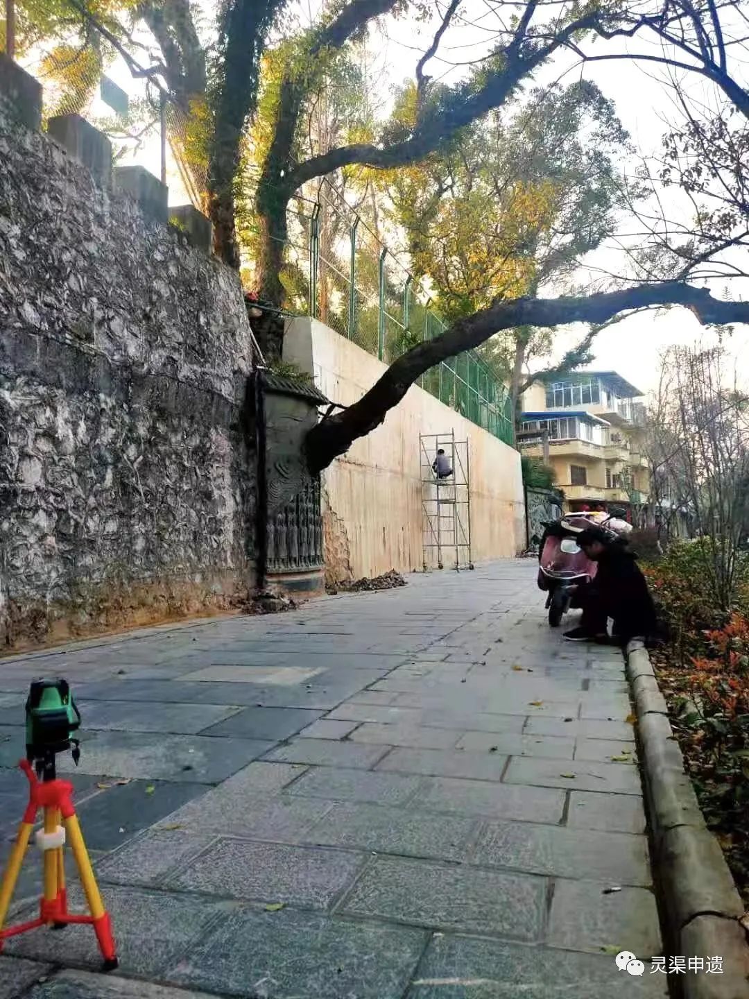 县委常委、县委宣传部部长、副县长庄慧琼(左)现场督导修复工作