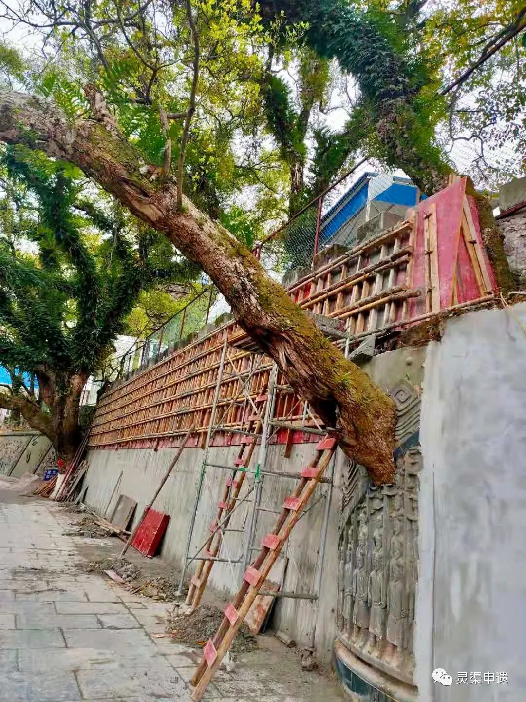 修复施工中的百米浮雕