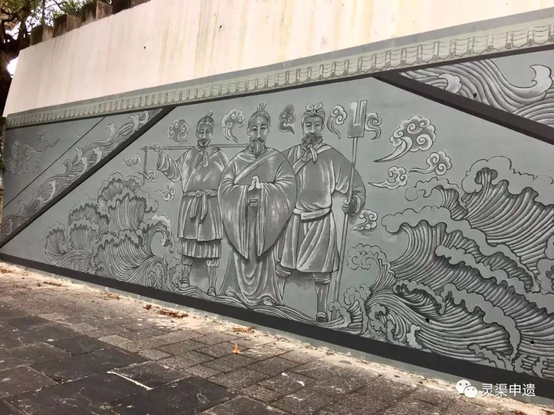 灵渠南路崩塌的原"百米浮雕"是一组大型石材浅浮雕,由中央美术学院教授袁运圃先生设计。浮雕前后有龙、凤纹饰,主体由秦皇出行、南征、修渠、一统天下四个主题组成。设计雕制过程中,充分地运用了壁、佩、兵器、钱币、度、量、衡、编钟、瓦当等秦代像征性元素,生动地反映了秦始皇修建灵渠,统一中国的丰功伟绩及秦代的灿烂文化。该浮雕自2005年建设竣工以来,即成为灵渠水街上一处重要的历史文化景观。但由于常年的雨水冲刷、渗透,“百米浮雕”墙于2009年呈出现崩塌、损坏情况,在县委、县政府组织人力物力修复之际,2010年第二次出现大面积垮塌,至2020年6月第三次渗透垮塌导致该景观严重损毁。