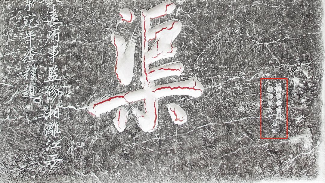 查礼是一位“生平于诗、词、书、画无所不精”的名家,岂是在其四十岁协修灵渠时将原本不入流之书法在短短一年之内瞬间提升到至臻境界。且不说这杜撰的传说有多离谱,其实这方“灵渠”石刻当时的具体情况是可以考证的。据灵渠博物院现存该石刻拓片中发现,石刻右下角有两列半极不容易发现的小字,鲜有人注意。其中上半部分已被磨毁但轮廓尚存,下半部分清晰可辨“麟……颜万新石刻”。